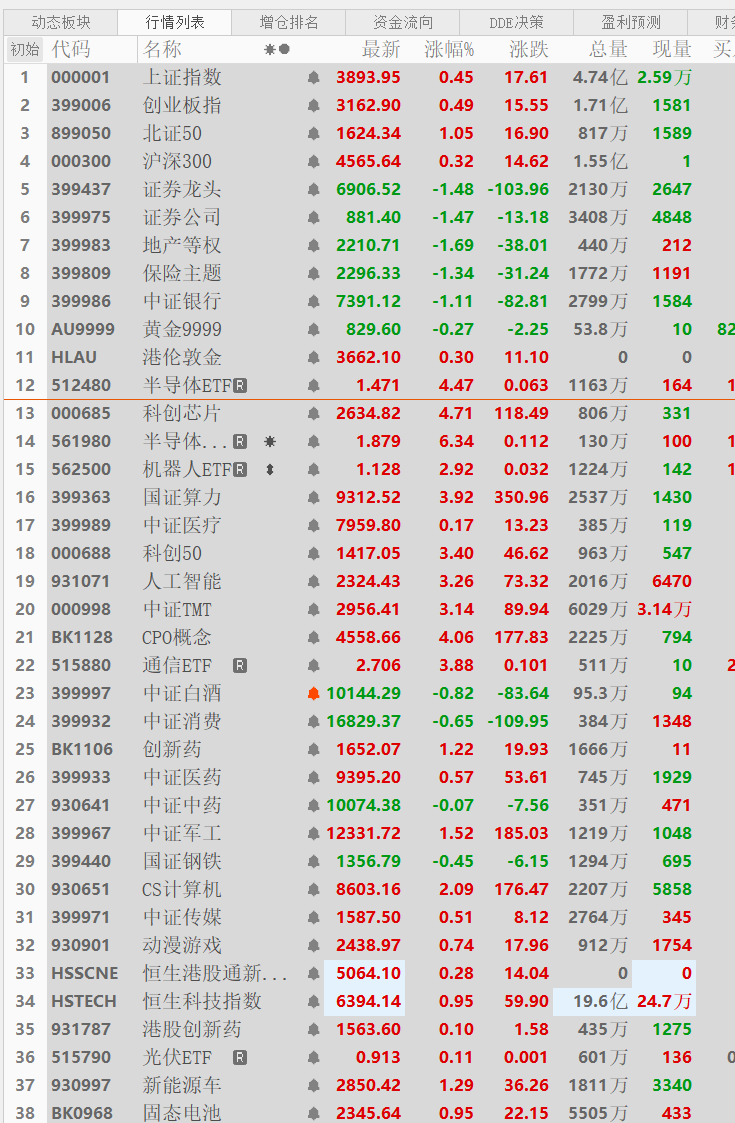 4. 现在美联储降息已经落地,也是如期降息25个基点,大盘今天盘中再创新高,现在很简单了,大龙就坐等大盘3900和4000就好,板块上大龙接下来还是主要围绕科技板块(半导体芯片人工智能机器人CPO等)+港股恒生科技+新能源车创业板光伏固态电池,创业板大龙继续看涨3500点,上午的行情基本就是这样, 今天的基金操作还是下午13:40发出, 不见不散!